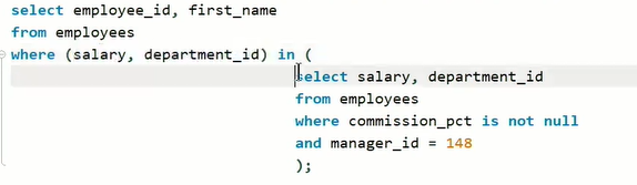 다중 행 ( in , any, all..) any : 하나라도 all : 모든 것 in : = 이면서 다중행일때 사용